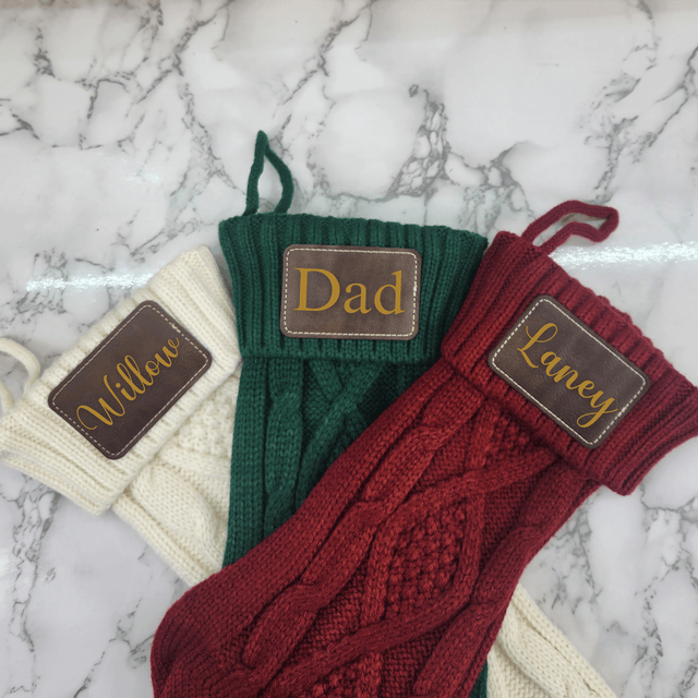Add an elegant touch to the holiday season with our Personalized Christmas Stockings, featuring a premium laser-engraved leather patch. Perfect for retail stores, gift shops, and holiday boutiques, these high-quality stockings are designed to be both stylish and sentimental — a best-seller for families, decorators, and gift-givers alike.