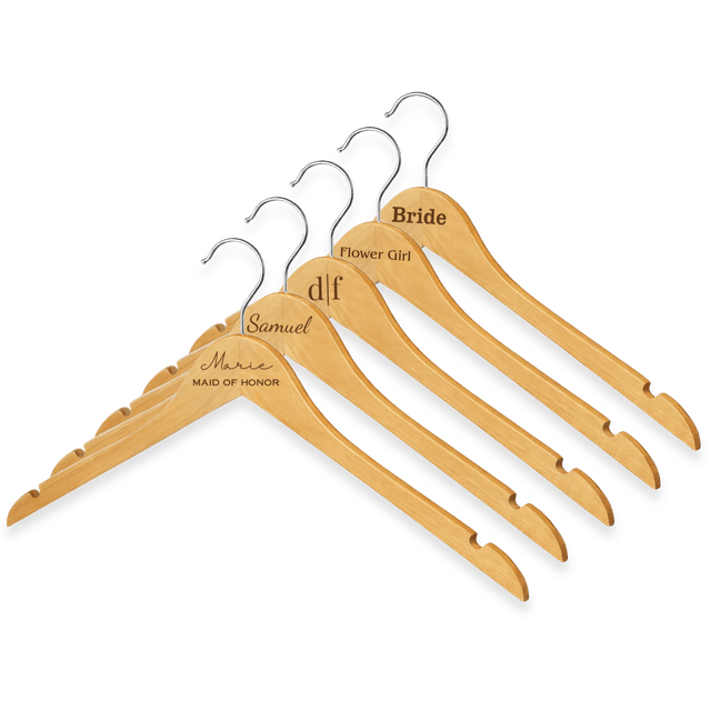 Premium engraved wooden clothes hangers crafted from durable hardwood with a smooth finish and sturdy metal hook. Each hanger features precision laser engraving for a permanent, high-contrast design that won’t fade or peel. Perfect for weddings, boutiques, gifts, logos, and monograms. Made to order and securely packaged, these personalized hangers are ideal for dropshipping with strong customization appeal and high perceived value.