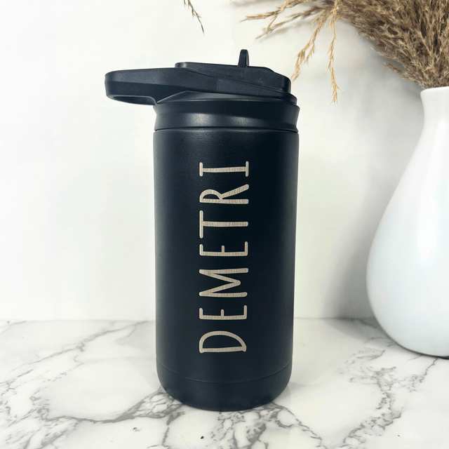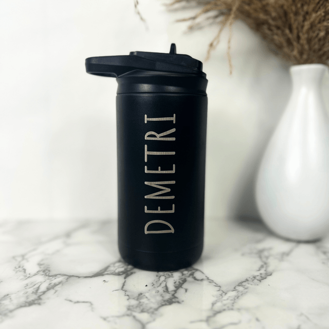 Our 12 oz Kids Bottle is crafted with high quality, food grade 18/8 stainless steel. Comes with a removeable straw for easy and hygienic cleaning. (304 stainless steel). The Kid’s water bottle is laser engraved for a permanent personalization.